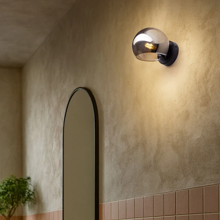 Aplica SOLARIS este realizată din sticlă afumată cu bază metalică lăcuită negru, combinând eleganța cu funcționalitatea. Designul semitransparent permite o difuzie caldă a luminii, ideală pentru crearea unei atmosfere plăcute. Dimensiuni: Ø 150 mm × H 119 mm × P 177 mm. Suportă surse LED E14, max. 7 W. Montaj pe suprafață, ușor de integrat în dormitoare, livinguri sau holuri. O soluție decorativă modernă, cu un plus de rafinament dat de sticla fumurie.