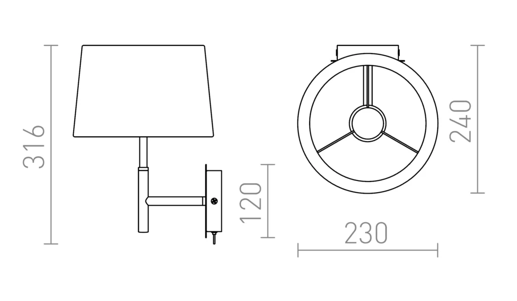 Aplica de perete Rendl Brodway este realizată cu abajur textil alb pe bază metalică finisată crom, având un design clasic și elegant, potrivită pentru dormitoare și zone de relaxare. Este echipată cu întrerupător tip toggle switch pentru o utilizare practică. Dimensiuni: Ø 235 × H 325 mm. Compatibilă cu surse de lumină LED E27, putere maximă 15W. Greutate 1300 g. Disponibilă în finisaj: alb / crom.