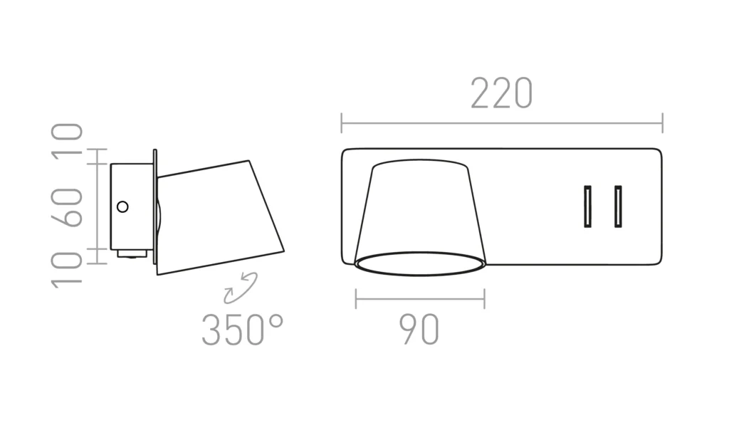 Aplica de perete Amadeus este echipată cu sursă LED integrată și reflector rotativ, oferind atât iluminare indirectă, cât și focalizată într-o singură direcție. Reflectorul și lumina indirectă sunt controlate independent prin întrerupătoare separate amplasate pe bază. Dimensiuni: L 220 × H 80 × P 100 mm, Ø 90 mm. Putere 4W, flux luminos 735 lm, lumină alb caldă (3000K). Unghi de rotație reflector 350°. Greutate 732 g. Grad de protecție IP20. Disponibilă în finisaje: alb și negru.