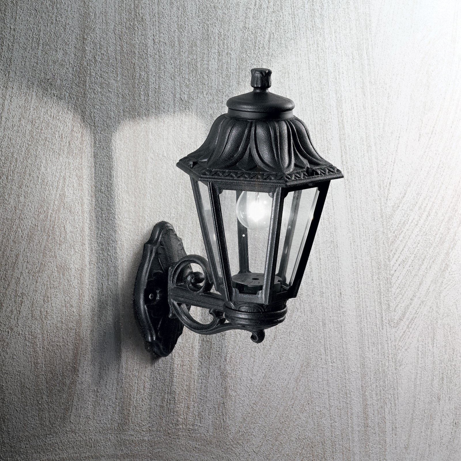 Aplica de exterior Dafne, L 220 x H 450 x P 275 mm, realizată din rășină de înaltă performanță, rezistentă la coroziune, tratată UV și capabilă să suporte variații termice între -60°C și +90°C. Difuzor din metacrilat antiîngălbenire. Compatibilă cu sursă E27 max 1 x 23W. Grad de protecție IP55. Disponibilă în finisaje alb sau negru, ideală pentru iluminatul decorativ și funcțional al fațadelor și teraselor.