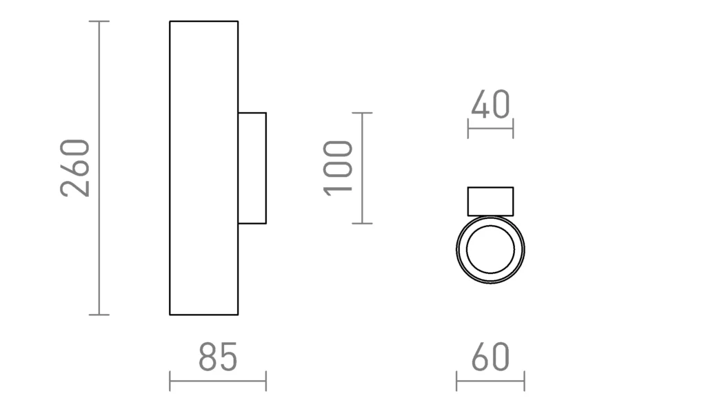 Aplica de perete Rendl Luke este realizată din metal cu finisaj alamă, având un design cilindric și elegant, potrivită pentru iluminat decorativ în interior. Proiectată pentru iluminare în sus și jos, este compatibilă cu surse de lumină LED GU10, putere maximă 7W, reglabilă prin utilizarea unui bec dimmable corespunzător. Dimensiuni: Ø 60 × H 260 × A 85 mm. Greutate 418 g. Disponibilă în finisaje: alamă, cupru, alb, negru.