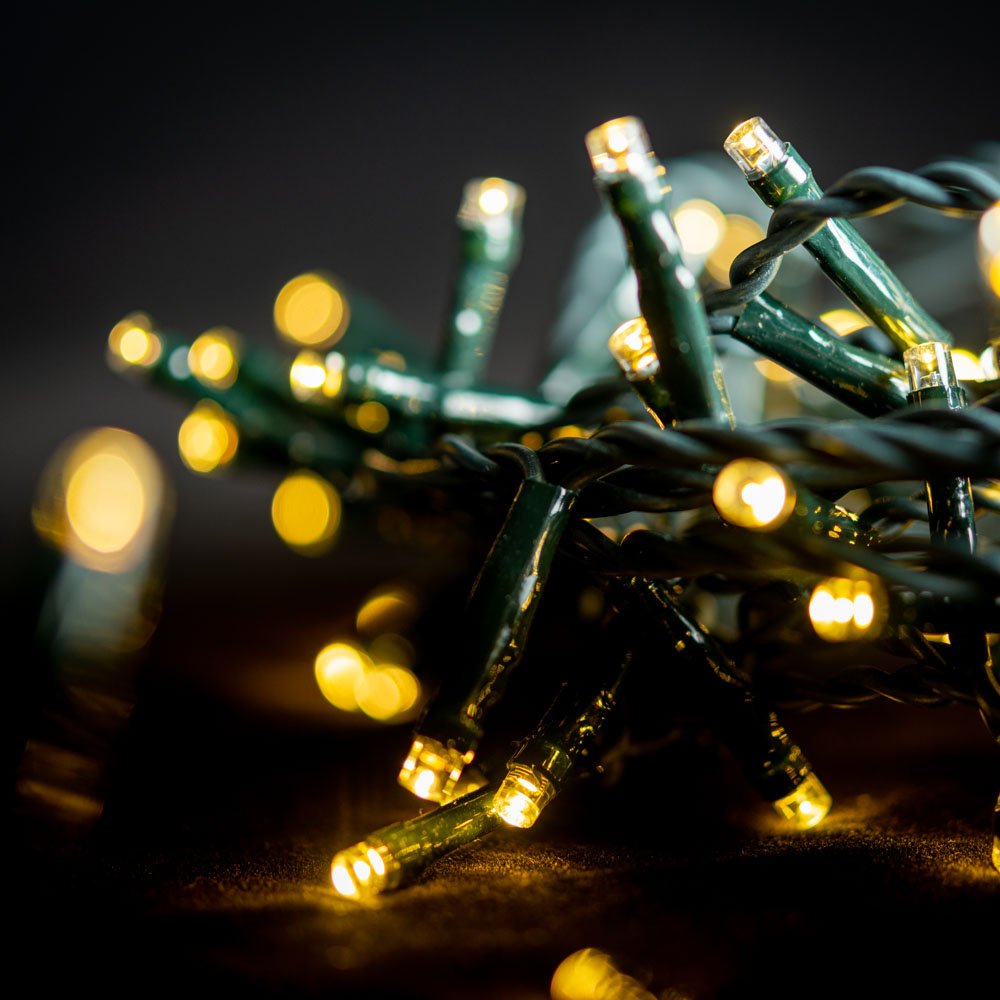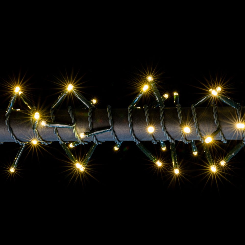 Instalație luminoasă de 5 m cu 100 LED-uri de culoare alb cald, ideală pentru decorarea interioară în perioada sărbătorilor. Funcționează la 230–240V și are protecție IP20, fiind potrivită pentru utilizare în spații uscate. Oferă o lumină festivă, intensă și uniformă, perfectă pentru brad, ferestre sau contururi decorative.