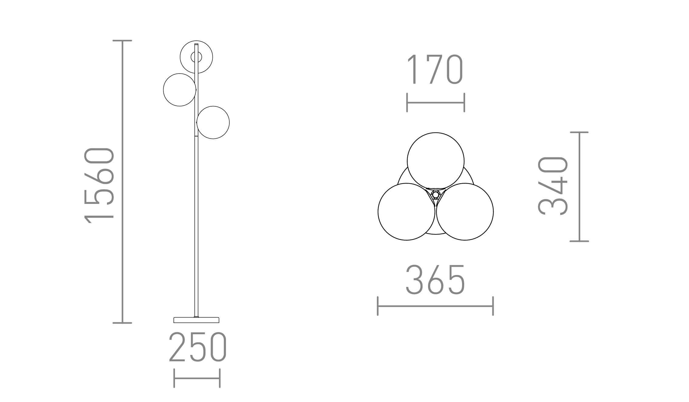 Lampadarul cu trei abajururi din sticlă opal albă, montate pe un piedestal metalic vopsit în negru, aduce un plus de rafinament și lumină difuză oricărui interior modern. Designul său sculptural, cu sfere dispuse pe înălțime, creează un efect decorativ deosebit, fiind potrivit atât pentru livinguri, cât și pentru spații de relaxare sau zone de lectură. Dimensiuni: Ø 36,5 × H 156 cm. Putere maximă 7W, dulie LED G9, greutate 4615 g. Echipat cu întrerupător pe cablu pentru utilizare facilă. Disponibil în finisaj: negru / sticlă opal.