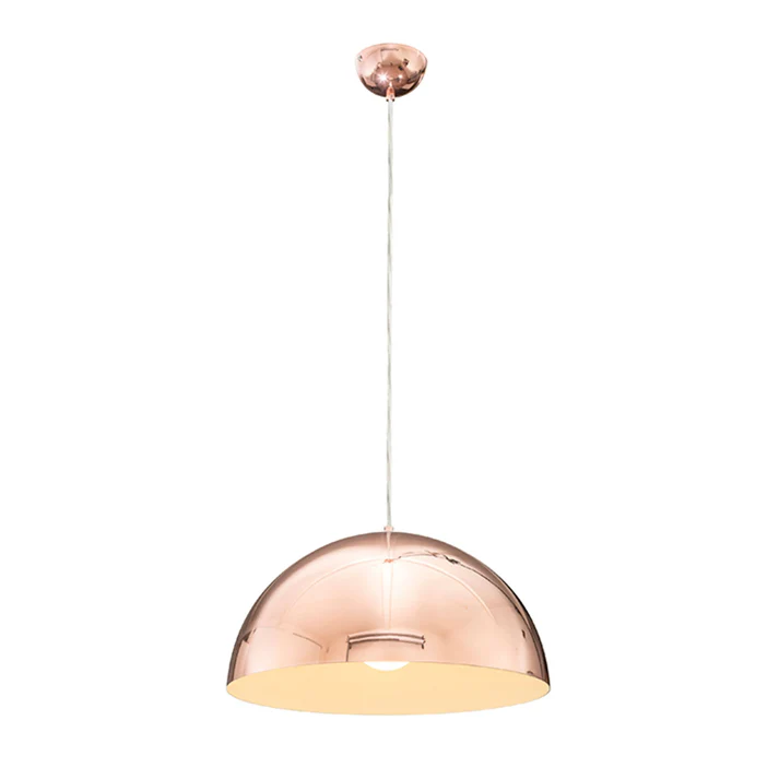 Pendulul MONROE 40 este un corp de iluminat elegant, cu abajur metalic de mari dimensiuni și finisaj premium. Forma sa semisferică și suprafața lucioasă din cupru adaugă un aer sofisticat și modern oricărui spațiu, fiind o alegere inspirată pentru dininguri, bucătării sau zone de zi. Compatibil cu surse de lumină LED E27, acest pendul oferă un iluminat uniform și plăcut, punând în valoare atât masa de dining, cât și întregul decor. Puterea recomandată este de 30 W, ceea ce îl face potrivit pentru spații medii și mari. Cu o greutate de 2000 g, lampa îmbină robustețea materialelor cu estetica minimalistă, în timp ce suspensia reglabilă până la 120 cm permite adaptarea ușoară la diferite înălțimi de tavan. Pendulul MONROE 40 este soluția ideală pentru interioare contemporane unde se dorește un punct de atracție vizual, dar și o sursă de lumină eficientă. Dimensiuni: Ø 40 × H 20 cm, suspensie max. 120 cm