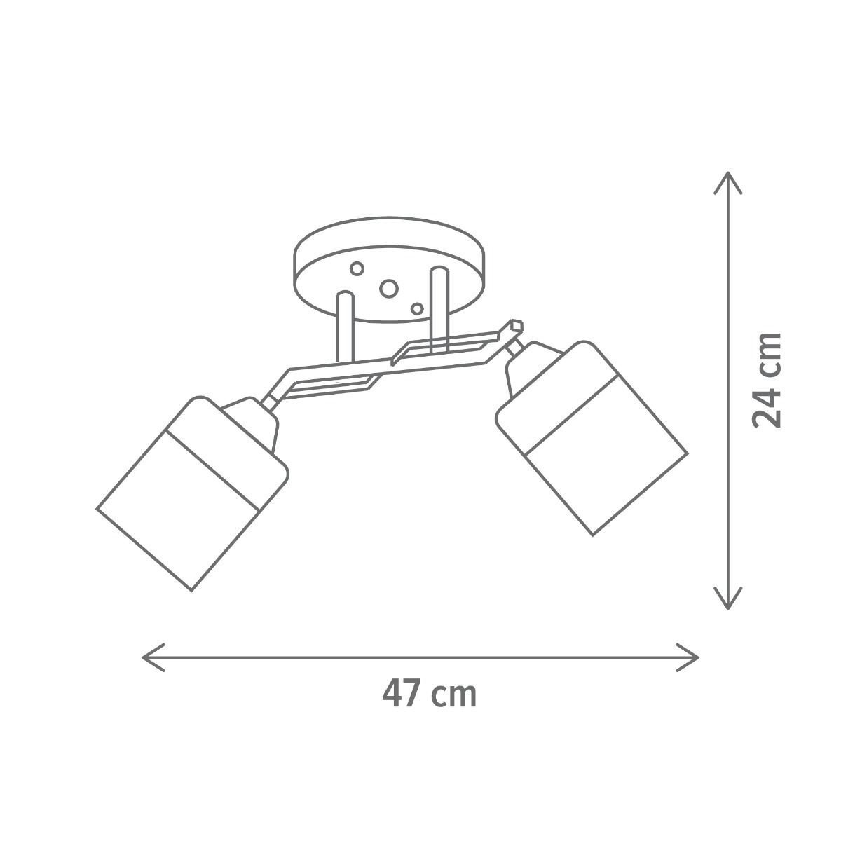 Are dimensiuni 24 × 47 × 15 cm și utilizează becuri E27 (max. 15W fiecare), neincluse, permițând personalizarea iluminării.