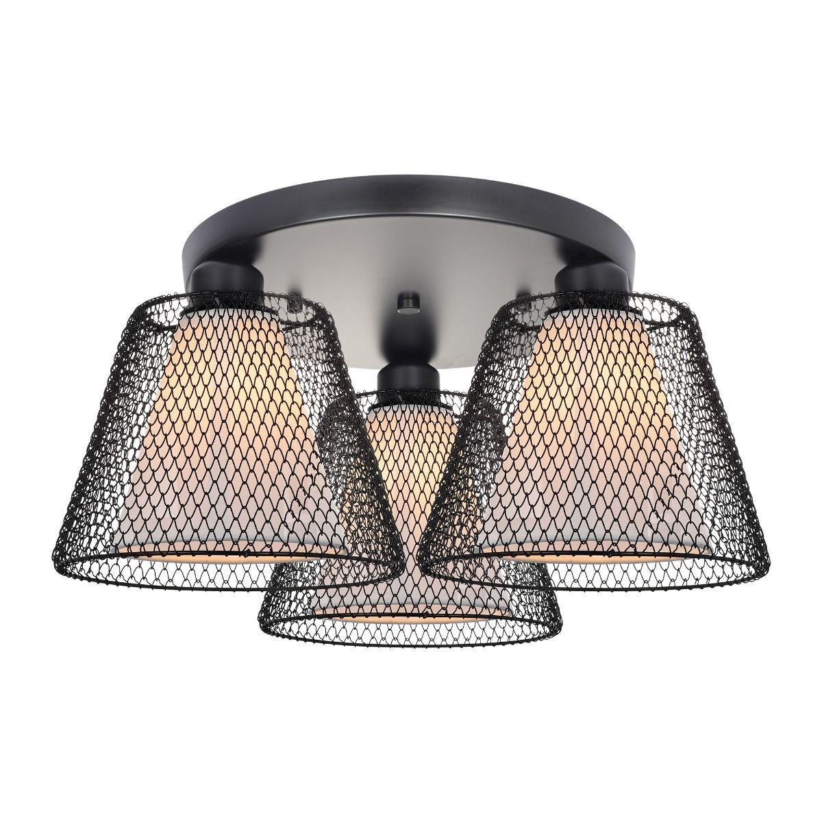 Plafonieră modernă pentru interior, cu 3 surse de iluminare, realizată din metal și textil, potrivită pentru living, dining sau hol.