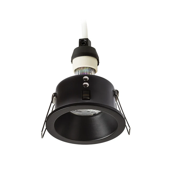Spotul încastrat BERMUDA este un corp de iluminat circular, realizat pentru montaj în tavan din gips-carton, ideal pentru băi sau spații cu umiditate ridicată datorită protecției IP65. Finisajul elegant în negru mat îi conferă un aspect modern și discret. Compatibil cu surse LED GU10, oferă posibilitatea de reglare a intensității luminii (dimmable). Dimensiuni: Ø 8,5 cm, adâncime de încastrare 15 cm, orificiu de montare 7,5 cm, greutate 200 g. Putere maximă 15 W, perfect pentru iluminat funcțional și estetic în băi, holuri sau zone rezidențiale.