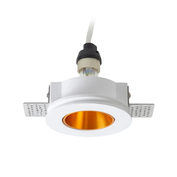 Spot încastrat DAYTONA, realizat din ipsos cu interior metalic, potrivit pentru montaj în plăci de rigips. Corpul funcționează cu surse de lumină LED cu soclu GU10, având o putere de 8 W. Are un diametru de 6 cm, o greutate de 356 g, o adâncime de încastrare de 14 cm și necesită un orificiu de montare de 10 cm. Designul său minimalist și reflectorul metalic interior creează un efect de lumină direcționată elegant, ideal pentru spații moderne. Spotul este compatibil cu becuri dimmabile, oferind control asupra intensității luminoase.