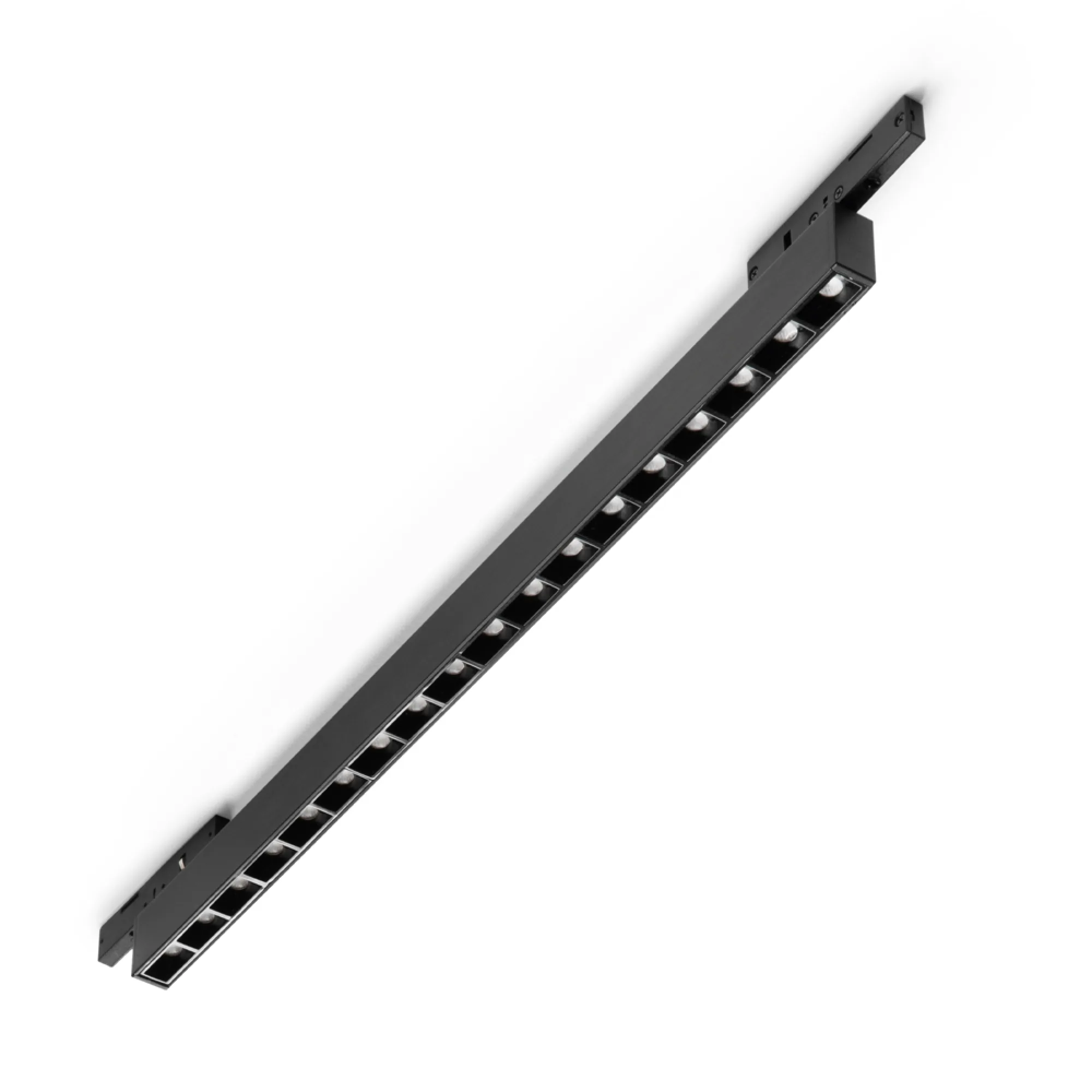 Spot liniar magnetic sistem DEVA, echipat cu 18 surse LED integrate, putere totală 14W, temperatură de culoare 3000K și flux luminos 1400 lm. Dimensiuni: L33.5 × H3 × P1.05 cm. Durată de viață: 30.000 h. Unghi de iluminare concentrat, ideal pentru accentuare. Sistem cu montaj magnetic pe șine de aluminiu anodizat sau vopsit negru mat. Grad de protecție IP20. Potrivit pentru aplicații interioare rezidențiale sau comerciale.