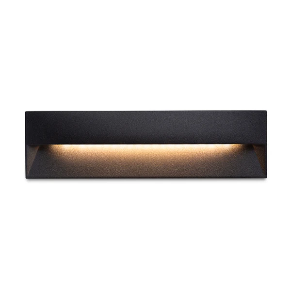 Aplica LED încastrată REP 18 este concepută pentru iluminarea de orientare a trotuarelor, scărilor sau teraselor, oferind o lumină caldă și uniformă orientată în jos. Poate fi utilizată atât la exterior, cât și la interior. Dimensiuni: 18 x 10.4 x 5 cm, Putere: 6W, Flux luminos: 330 lm, Temperatură de culoare: 3000K, Grad de protecție: IP65, Greutate: 294 g, Dimensiune orificiu montare: 4.8 x 17.8 cm. Finisajul negru mat îi oferă un aspect modern și minimalist, perfect pentru proiecte arhitecturale elegante.
