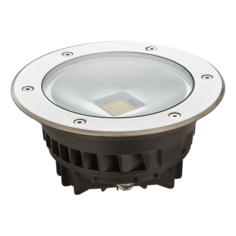 Spot LED încastrat pentru exterior, realizat din oțel inoxidabil, conceput pentru montaj în pardoseală sau în sol, ideal pentru iluminarea aleilor, teraselor sau elementelor arhitecturale. Corpul are diametru de 20 cm și înălțime de 10,5 cm, cu orificiu de montaj de 19 cm și adâncime de încastrare de 10 cm, asigurând integrare stabilă și sigură în suprafețe exterioare.