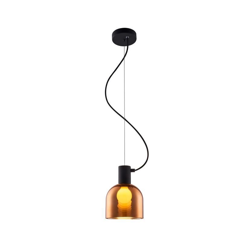 Suspensie pentru interior, cu design minimalist și accent urban, ideală pentru spații moderne. Are dimensiuni totale Ø 15 × H120 cm și este realizată din metal și sticlă, în finisaj crom–negru/cupru-negru. Abajurul din sticlă evidențiază sursa de lumină și creează un efect decorativ subtil. Este compatibilă cu bec E27 (max. 15W), neincluse, potrivită pentru utilizare cu LED. Funcționează la 220–240V, are grad de protecție IP20 și este destinată utilizării la interior.
